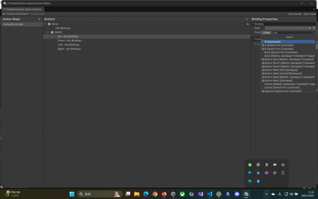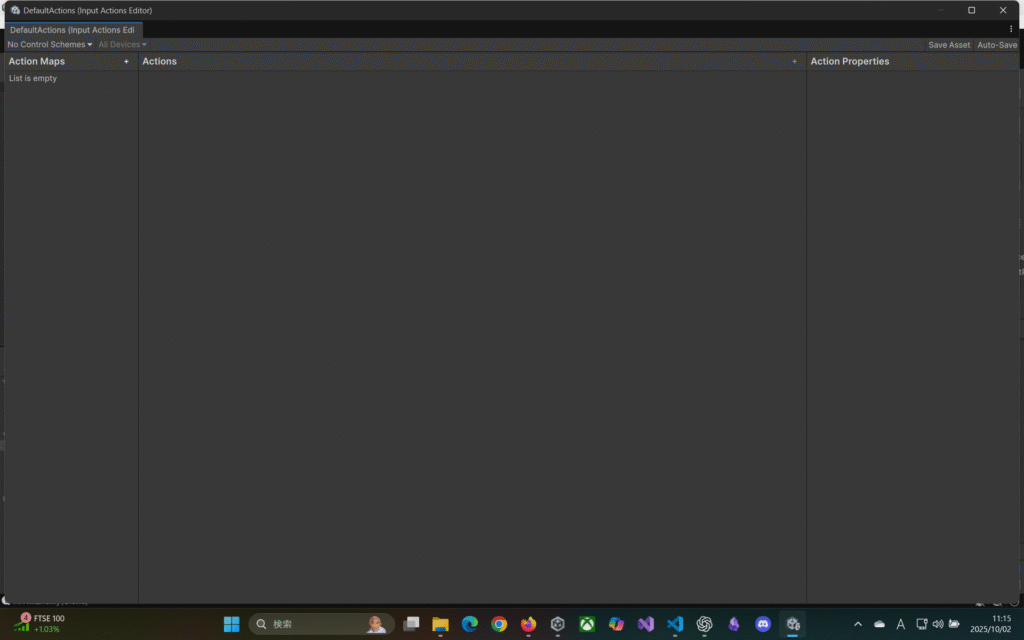 Edit>ProjectSettings内のInputSystemPackage内のProject-wide Actionsに