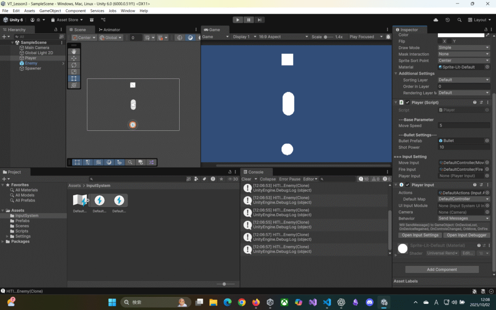 bulletRb = bullet.GetComponent<Rigidbody2D>(); // Rigidbody2Dを取得してbulletRbに代入