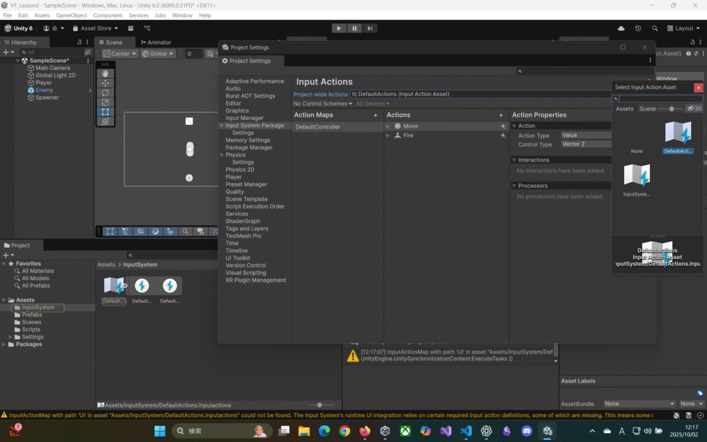 作成した「InputSystem_Action(Input Action Asset)」を登録。