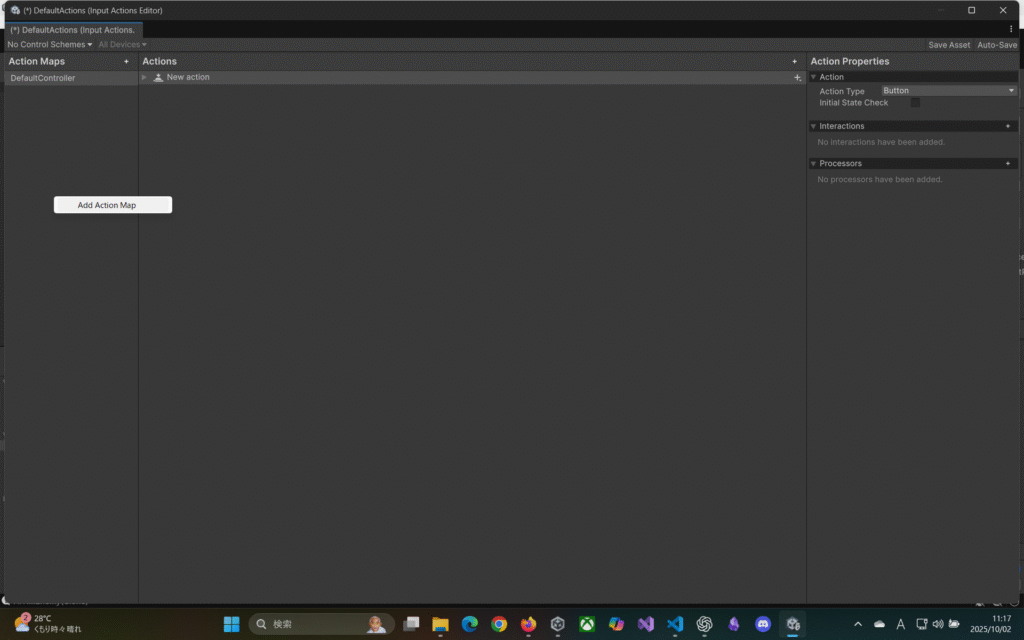 ActionMapを右クリック⇒AddActionMapを選択