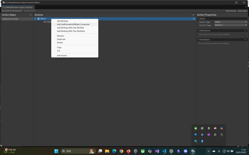 Moveを右クリック⇒AddUp¥Down¥Left¥Right Composite