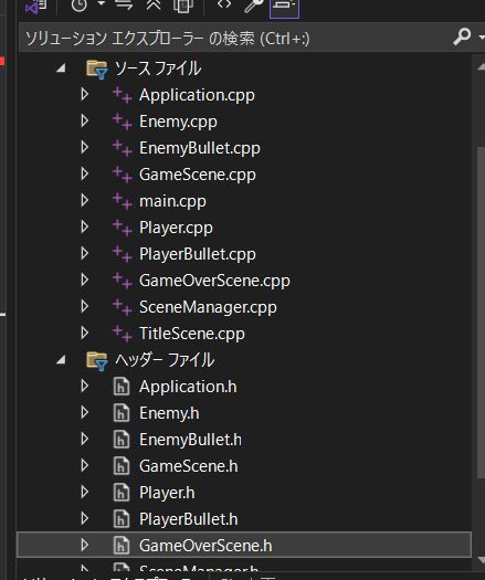 SceneGameOver.cpp、SceneGameOver.hをインポートして