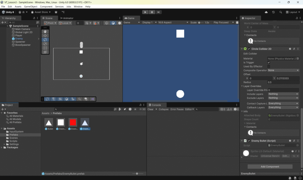 Bullet.prefabをコピーしてEnemyBullet.prefabにリネーム。