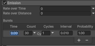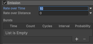 - 「Start Lifetime × Emission Rate」で全体の粒子量が決まる